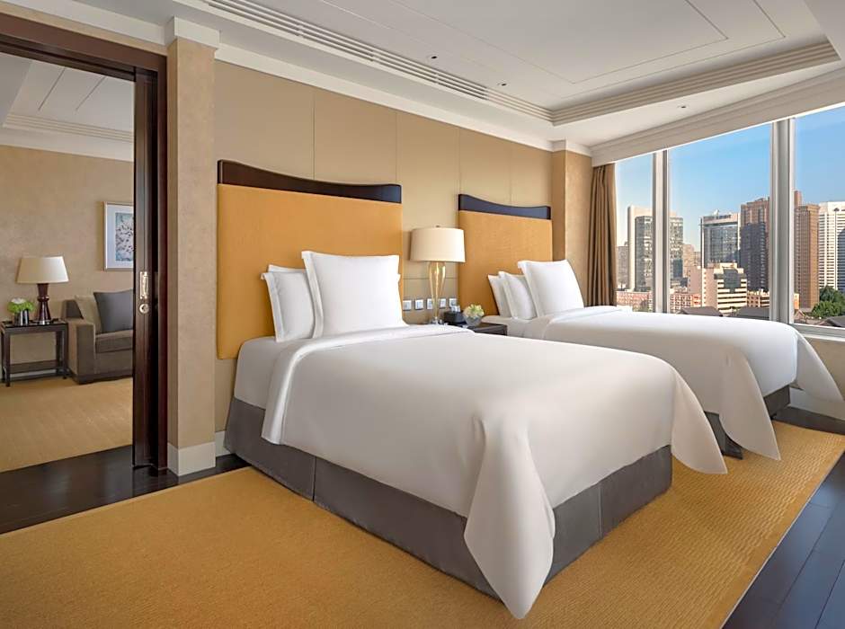 • Mini bar (nonalcoholic beverages only) replenished once during stay • Complimentary 2 pieces of laundry service per suite, per night.(Not applicable to dry cleaning service and express laundry service) • Personalized concierge service • Enjoy 30 -minute neck and shoulder massage for 2 guests per suite, once during stay period. A 24-hour advance reservation is required. This offer is for registered guests only, it is nonrefundable, and cannot be used in combined with other promotions or benefits. • The privileges in the Executive Club Lounge, including: -Personalized check in and check out at the Executive Club Lounge -Savor Chefs creations with the following dining options: * Buffet Breakfast from 6:30am to 11:00am * Afternoon Tea from 3:00pm to 5:00pm * Evening cocktail from 5:30pm to 7:30pm -Including 1 hour meeting room usage per room per stay -Business Center and Concierge service is available at request -Freshly brewed coffee or tea served from Executive Club Lounge to your room -In-room local calls -Refreshments and snacks offered throughout the day -A comprehensive collection of local and international newspaper and magazines available